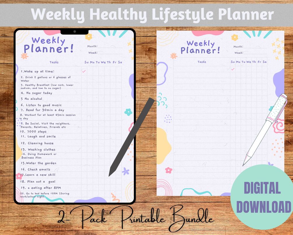 Weekly Healthy Lifestyle Planner Checklist
